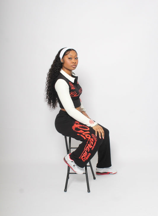 (Womens crop two piece set) Black,red,white