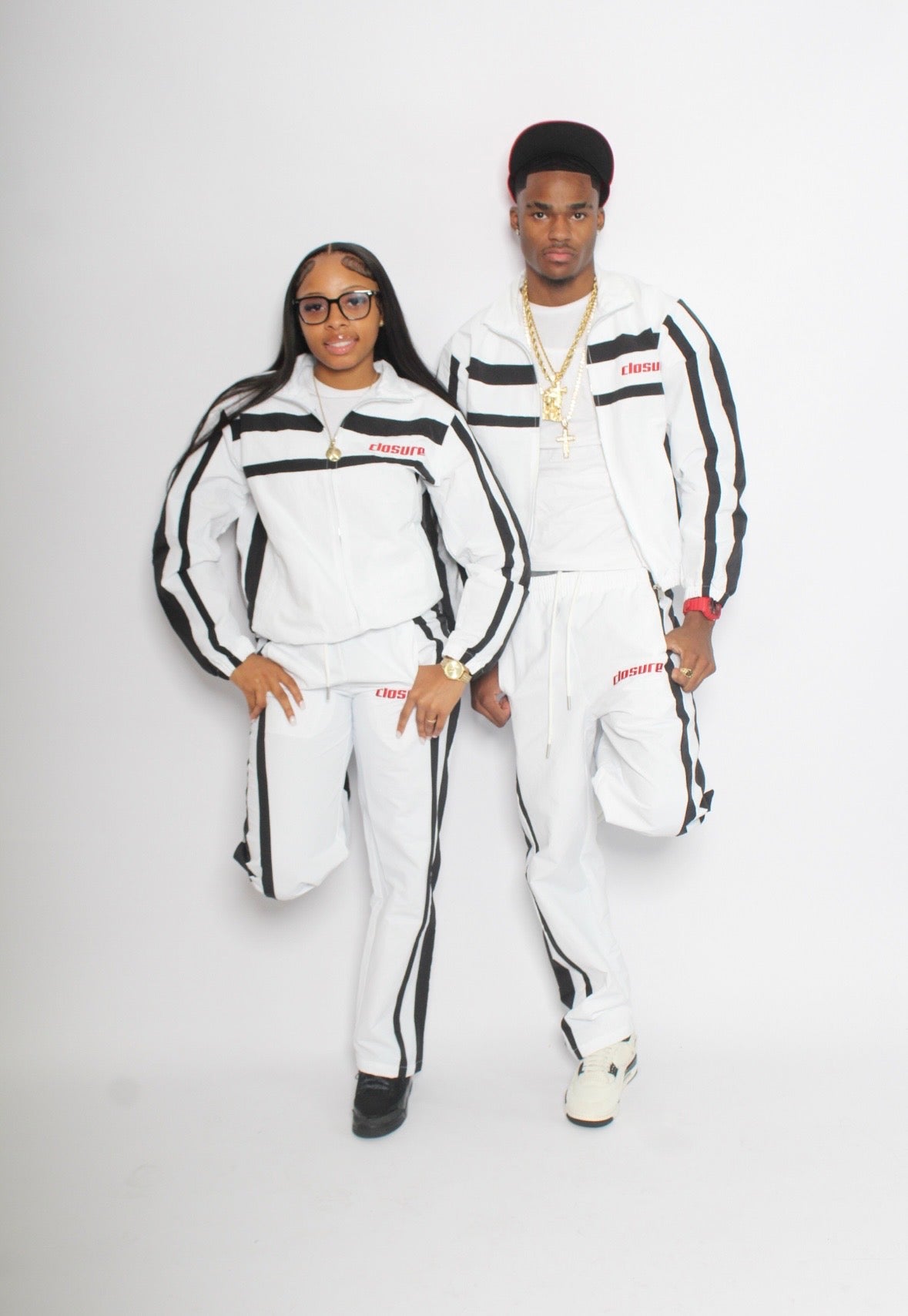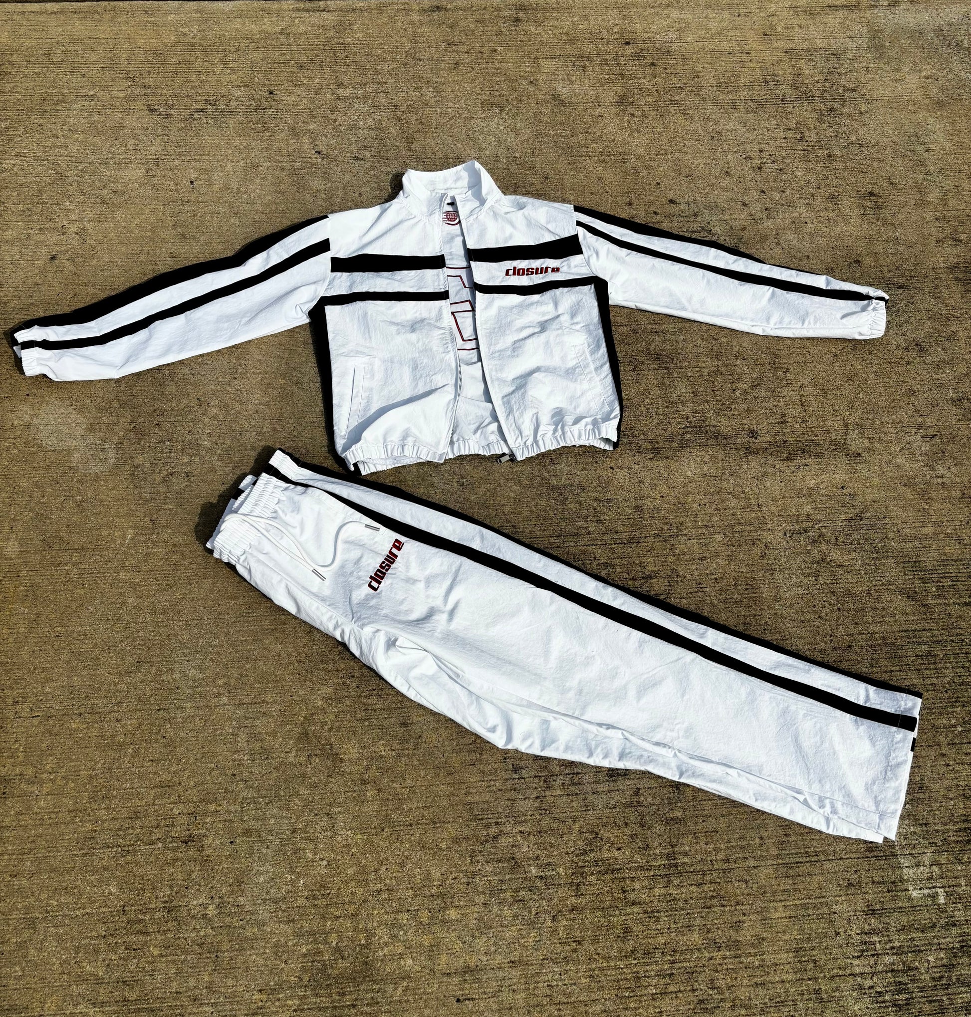 (Closure nylon Tracksuit) white, red,black